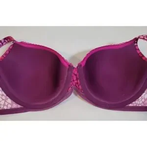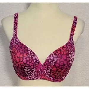 Victorias Secret Underwire Bra Pink Purple Hearts Size 36D Rhinestone Lined 1159