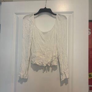 Hollister White Smocked Crop Top with Puff Long Sleeves