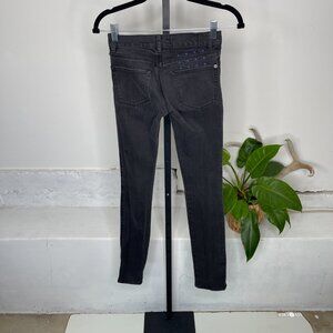 Ksubi Skinny Jeans 24 Dark Gray Denim Stretch Ankle Zip Embroidered Cross Logo