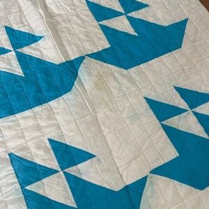 Vintage patchwork sailboat quilt blanket, this is in used condition with colour bleeding and holes etc! Would be great for Upcycling or a repair project