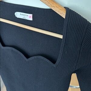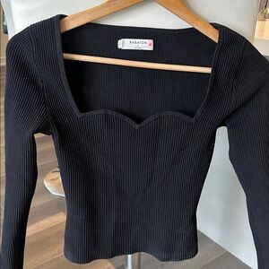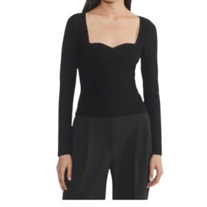 Aritzia Babaton Sculpt Knit Sweetheart Neck Long Sleeve Top Black Size S