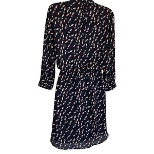 Dr2 Navy Floral Elastic/Draw String Waist 3/4 Sleeve Dress W/Pockets M