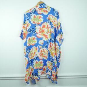 Skye One Size Kimono Beach Cover Robe Topper Blue Floral Tropical Resort Beachy