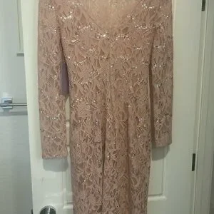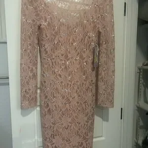 Shine in this elegant lace dress adorned with sequins. Perfect for special occasions, this blush pink dress offers a sophisticated look.