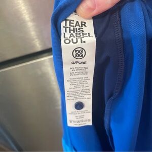Gently worn women’s navy color blocked gold polo. Size small. See photos for fabric content.