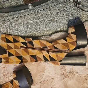 excellent condition size 7 never worn. minor scuffs throughout from being in storage. the heels have slight bubbling mainly left heel. these were $370 + plus tax. moving so i need to clear out fast!
