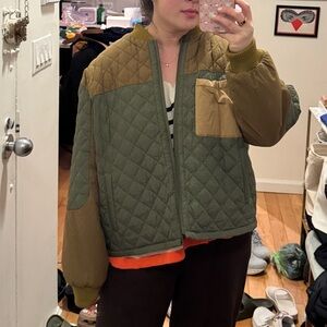 THE GREAT. Quilted Jacket in Green and Tan
