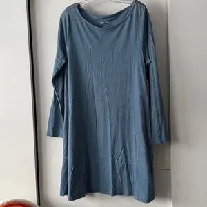 Wool& WoolAnd Rowena Merino Wool Swing Dress Long Sleeve Blue Women's Size L B02