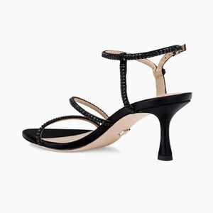 NWT: Badgley Mischka Julianna Black Satin Strappy Heels new in box with dust bag