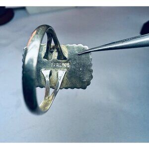 The ring has a sturdy band and a raised setting that gives it an elegant yet bold presence on the hand. Marked “STERLING” on the underside, confirming silver purity. This piece has a timeless vintage look and would make a wonderful addition to any jewelry collection, whether worn daily or saved for special occasions.