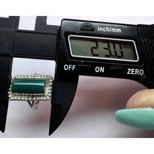 Vintage 925 Sterling Silver Green Onyx Rectangle Ring Size 9 Estate Jewelry