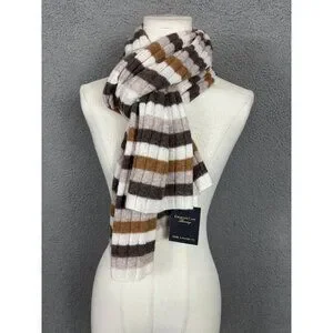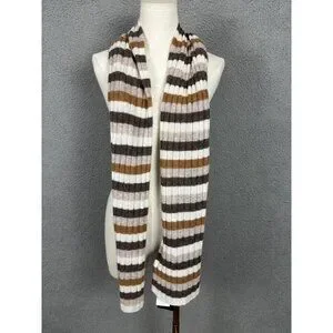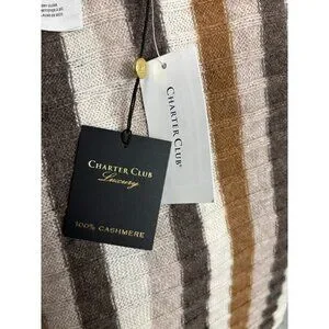 Charter Club Luxury 100% Cashmere Striped Scarf Brown/White/Beige One Size NWT's