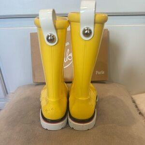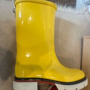 Yellow rain boot, Authentic Christian Louboutin, with classic red bottom.