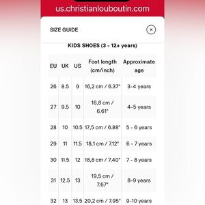 Louboutin shoes typically run half to full size small. Size listed is 29.