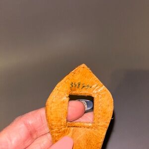 You can see a stain and wear in the photos the pocket inside needs to be fixed. I don’t want to mess with it. It’s beautiful and feels wonderful to the touch as it is lamb skin leather. 10L-3W-7H