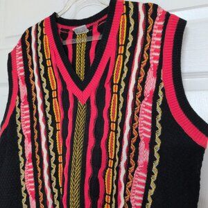 Vintage Judi Mens Black Red 3D Abstract Knit V Neck Sleeveless Pullover Sweater Vest Size XL