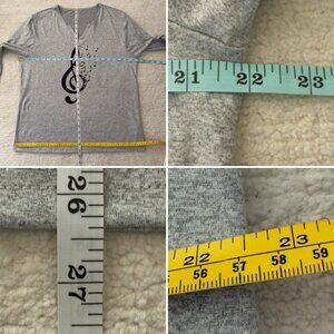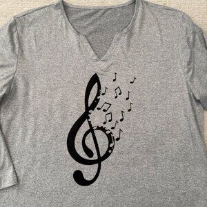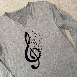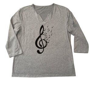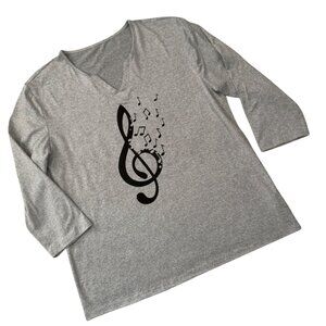 Music Treble Clef Top Size XL Gray Three Quarter Sleeve Stretch Knit
