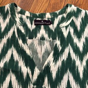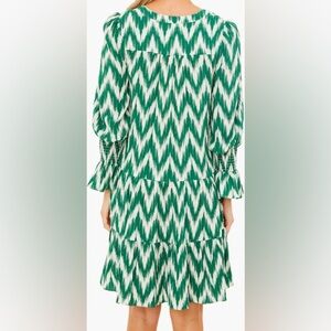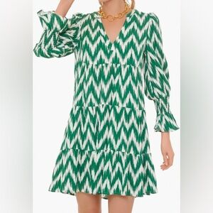 Tuckernuck Pomander Place Green Ikat Kenzo Dress V-neck Tiered Flowy A-line Sm