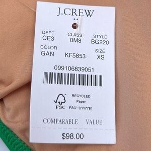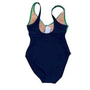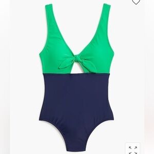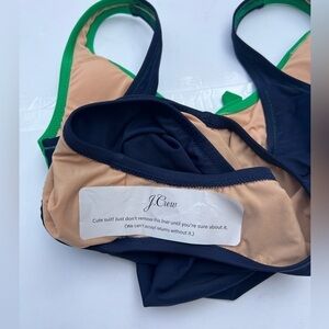 J Crew blue and green cut out with bow one piece swimsuit. New with tags! Cute cut out with bow detail in front. Open back. Full coverage in back. Sanitary liner still attached. This swimsuit is a classic look with modern details. Perfect condition with no noted flaws.