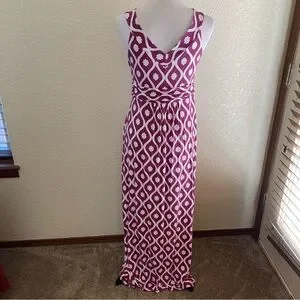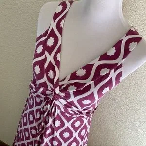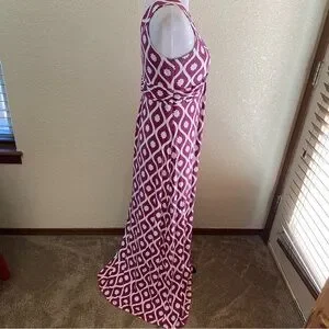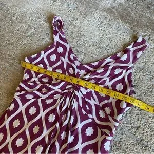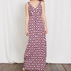 Boden Maxi Dress Long Geo Floral Print V Neck Sleeveless Purple White Twist: 10