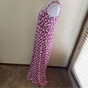 Boden Maxi Dress Long Geo Floral Print V Neck Sleeveless Purple White: 10