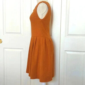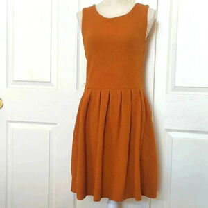 ANTHROPOLOGIE Noon & Night Dress by Ganni A textured knit dress, with a fitted sleeveless bodice and classic A-line skirt. Brown Latte tone. Zipper back entry. Cotton and elastane