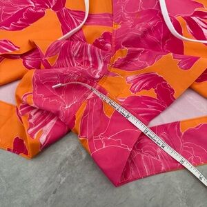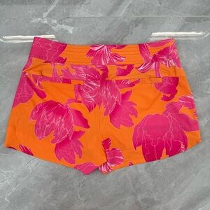 Good condition - Women’s Athleta Hudson Floral Board Shorts Swim Pockets Drawstring. Has two zipper side pockets, two zipper back pockets, button with zipper closure, and drawstring in the waistband. Colors: orange, pink, and white. Size: 6.