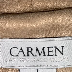 CARMEN MARC VALVO jacket, cream, waterfall front, faux leather zip cuffs. L