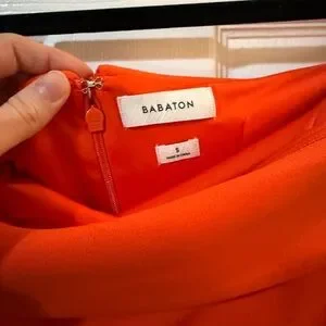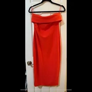 Chic strapless design. Bold orange/red hue. Perfect for stylish outings. Worn once, like new!