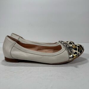 AGL Attilio Giusti Leombruni Cream Metallic Leopard Print Captoe Flats Size 9