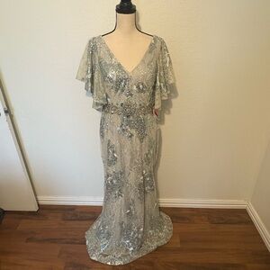 Mac Duggal Bell Sleeve Floral Embellished Gown – Seafoam – Size 12 – NWT