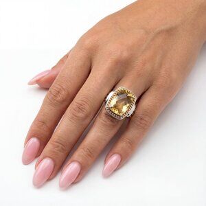925 Sterling Silver Citrine Quartz Statement Ring Luxury Cocktail Jewelry Size 6