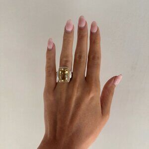 This is a beautiful statement cocktail ring that works equally well as everyday jewelry or a special occasion piece. The warm golden tones of the citrine complement both fair and deeper skin tones, making it a versatile addition to any jewelry collection.