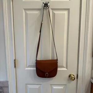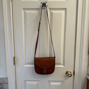 Longchamp crossbody bag. Approx 9” X 8” with 40” adjustable strap. Cognac leather with gold hardware. One zip pocket and one slip pocket on interior. Very good condition.