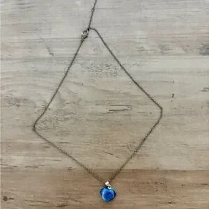 Charming Vintage necklace with a blue heart pendant. Adds a lovely accent to any look.