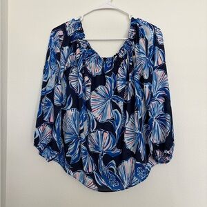 Lilly Pulitzer Lou Lou Top Bright Navy in Reel Life size M