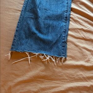 Brand new condition, raw hem in size 26. It has a 28” length and button closure
