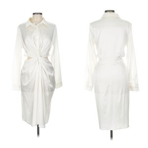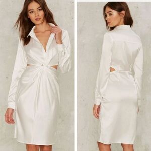 NASTY GAL Love Potion White Knot Button Closure Unlined Satin Dress- Size Large