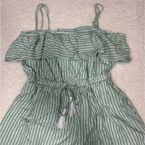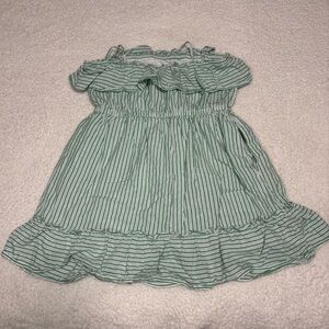 American Eagle Women Green Stripes Strapless Ruffle Mini Dress