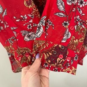 Roaman's Georgette Semi Sheer Longline Floral Blouse Plus Size Flowy Loose 36W