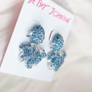 NWT Betsey Johnson Blue Crystal Fish Earrings