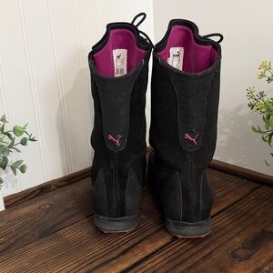 Stylish black sueded leather Puma x Mahanuala limited edition lace-up boots by Puma. Perfect for versatile wear. In absolutely excellent condition women’s size US 9/ EU 40