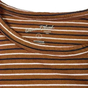 Universal Thread Orange Crewneck Navy/White Striped Short Sleeve | Size Large