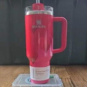 Brand new Stanley Flowstate Quencher H2.0 – 40 oz tumbler featuring a pink/red heart design, perfect for Valentine’s Day, gifts, or collectors.