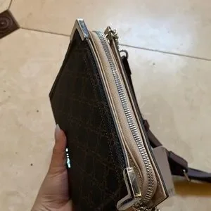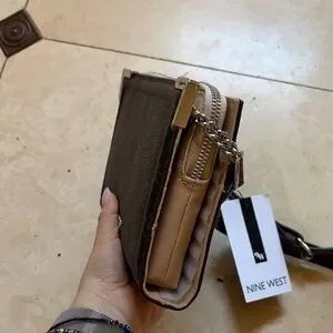 Nine West Dark Brown Crossbody Bag with Silver Accents