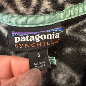 Patagonia Synchilla Black and White Fleece Pullover with Pink Piping