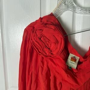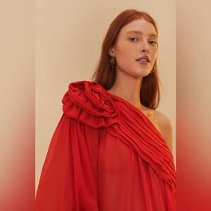 Farm Rio Red Rose Puff Sleeve One-Shoulder Blouse XL