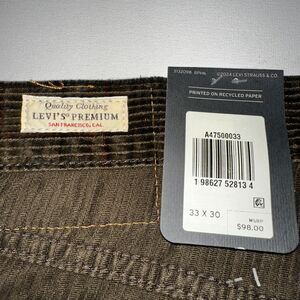 NWT Levi's 578 Baggy Corduroy Jeans Ennis Plaid Brown Size 33x30 (34X28) $98