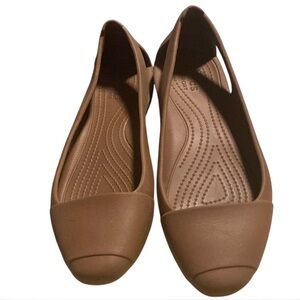 CROCS ICONIC LAURA WOMENS SZ 8 Brown SLIP ON BALLERINA CUTOUTS FLATS