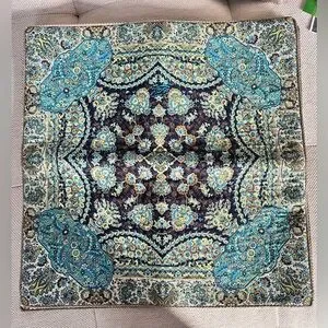 Add a touch of global elegance to your space with this stunning handmade pillow cover crafted in Dubai. Featuring an intricate, ornate pattern inspired by traditional Middle Eastern and Persian-style motifs, this piece showcases rich shades of turquoise, teal, gold, ivory, and deep navy for a truly eye-catching design.